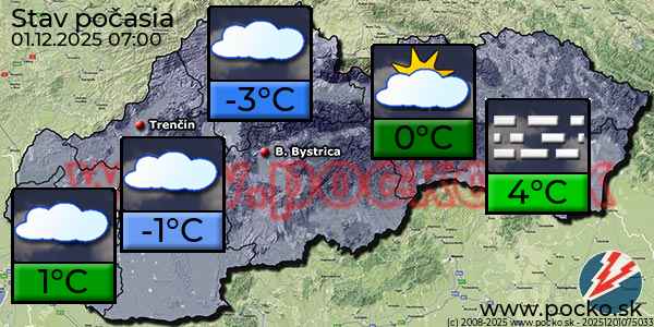 Na strednom Slovensku dnes očakávame prevažne oblačno. Najvyššie denné teploty 4 až 7 °C.